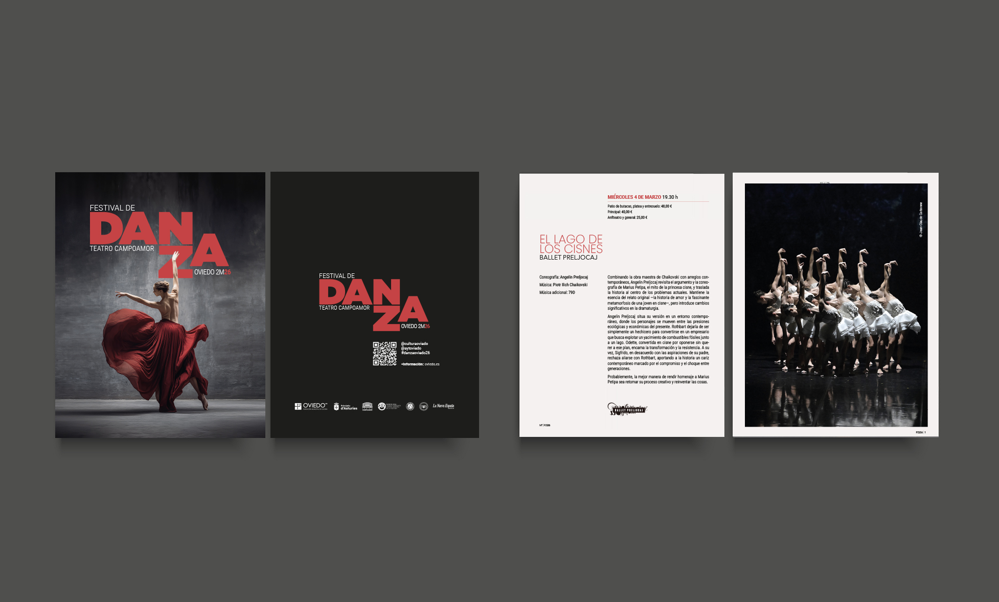 Se nos solicitó por parte de la Concejalía de Cultura del Ayuntamiento de Oviedo, la dirección de arte, el diseño gráfico e implantación de todos los contenidos para el Ciclo de Danza para el año 2026 que se realiza anualmente en el Teatro Campoamor.